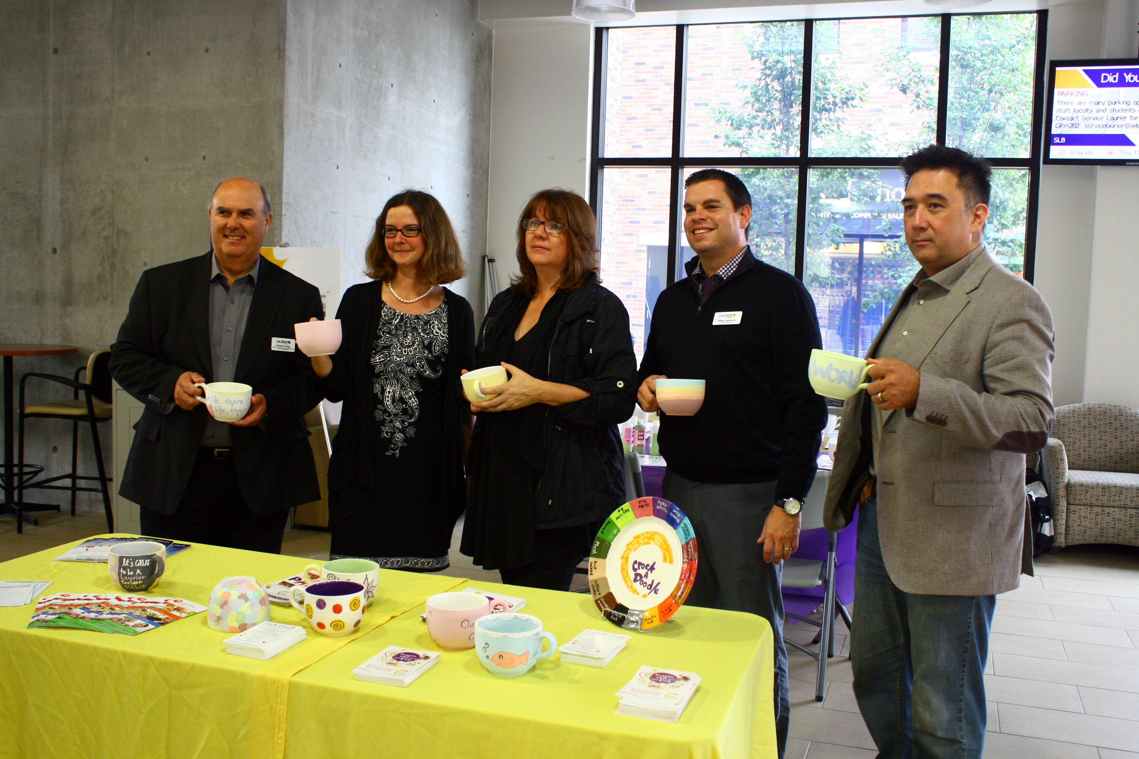 This past week, the Brant United Way held a booth and table in the west wing of Laurier’s Research and Academic Centre asking for students and faculty to paint soup mugs for their upcoming soup lunch fundraiser called, Be a Souper Hero. The soup mug painting was scheduled to run from Monday to Friday, 11 a.m. until 2 p.m. each day, but due to popularity the stock of soup mugs ran out by Thursday – after the fact of ordering more. The paint-it-yourself pottery company, Crock A Doodle partnered with Brant United Way by providing all painting supplies and mugs at a discounted rate as well as $5 gift cards to give to each participant.