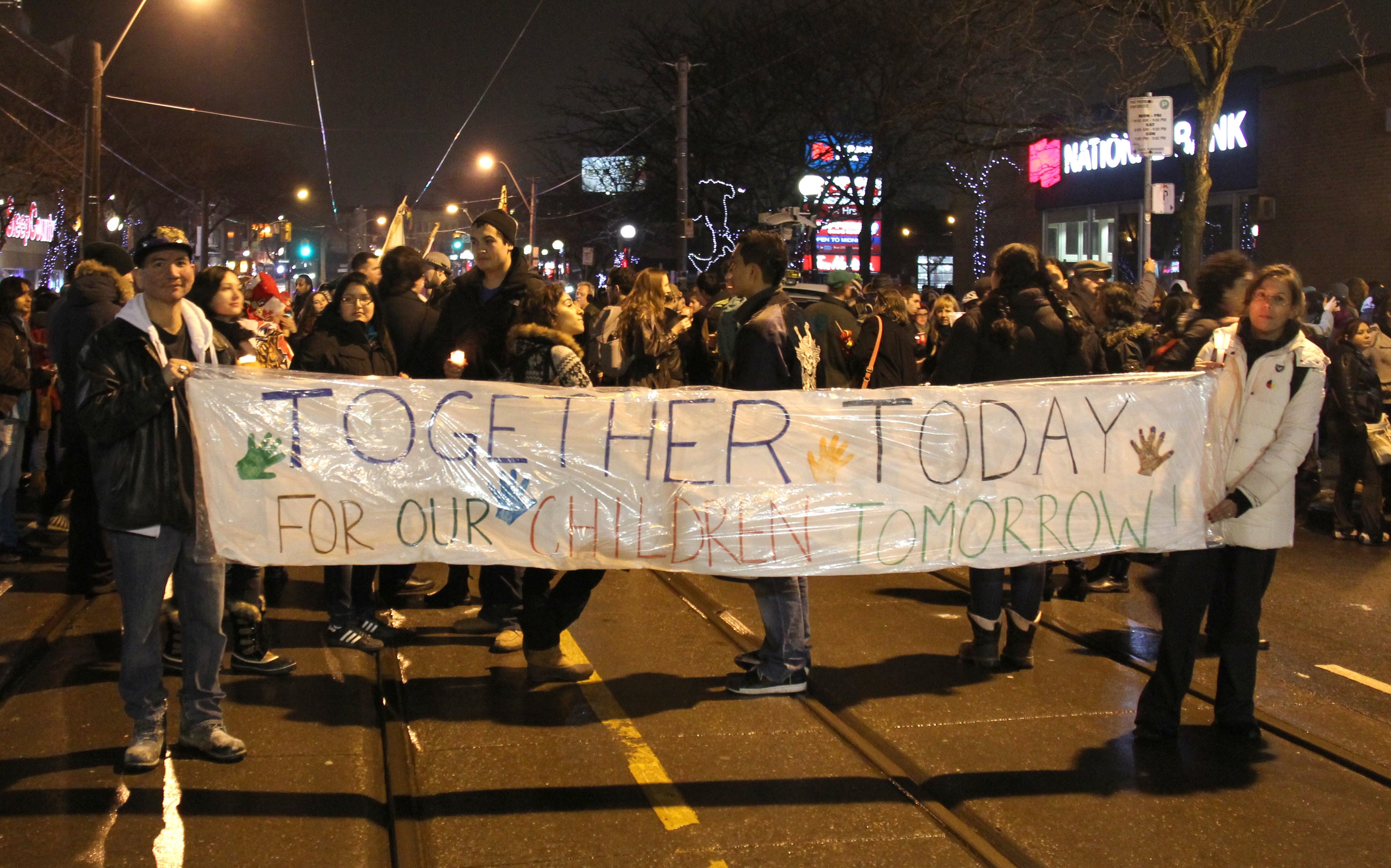 Protestors from the Idle No More movement formed a blockade in Downtown Toronto Friday night to bring awareness to treaty infringement by the Harper government.
