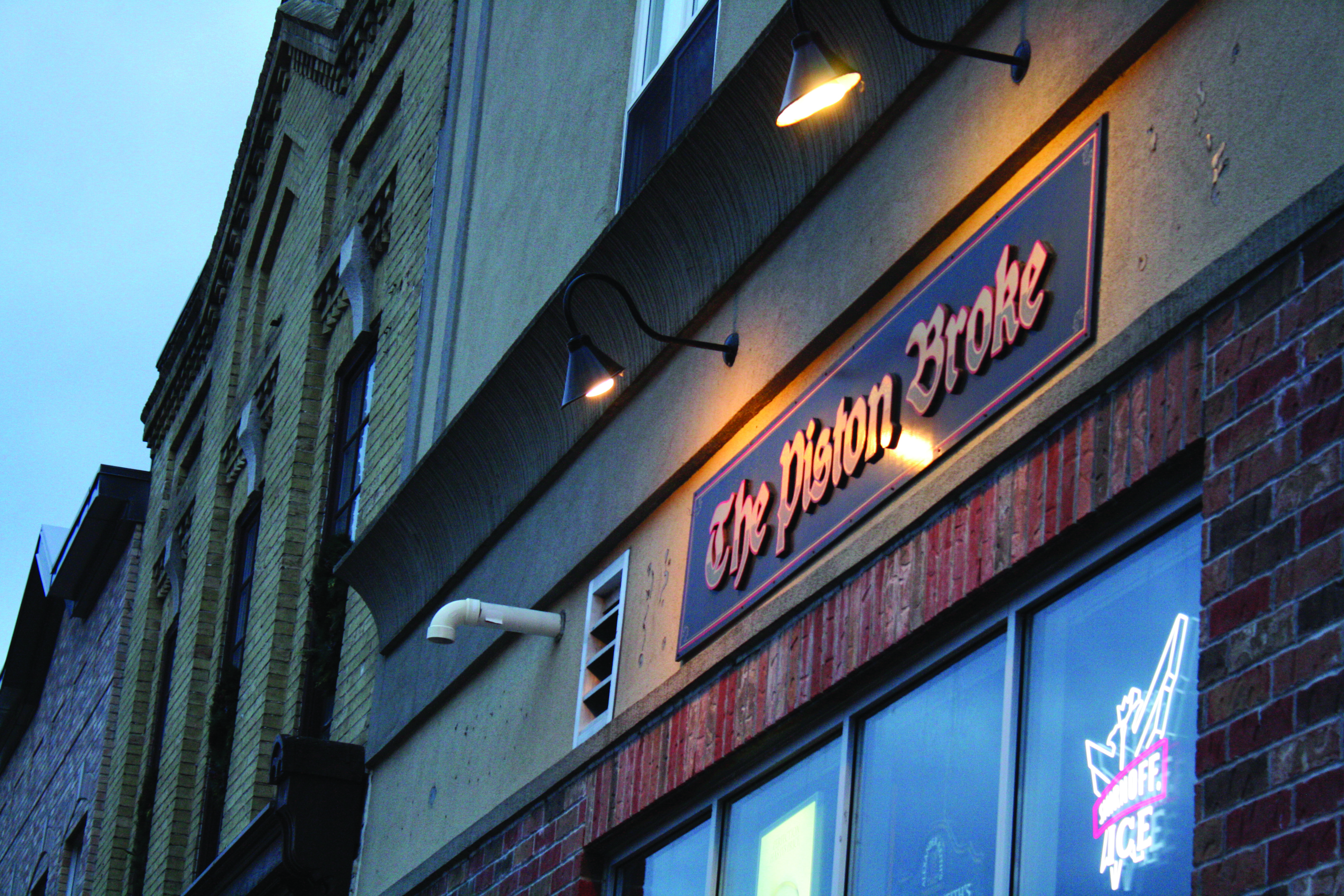 Piston Broke. It’s polished–pristine really–and that shocks you every time; the shiny caramel wood, and warm lighting are surreal. But, you just can’t place the atmosphere. Irish? American? Canadian? The slew of back lit foreign bottles; sparkling like sea glass, don’t help. Men, with fleece sweaters and shaggy haircuts, drink alone at the bar. Pints clink all around the room as waitresses in head-to-toe black rush around corners frantically.