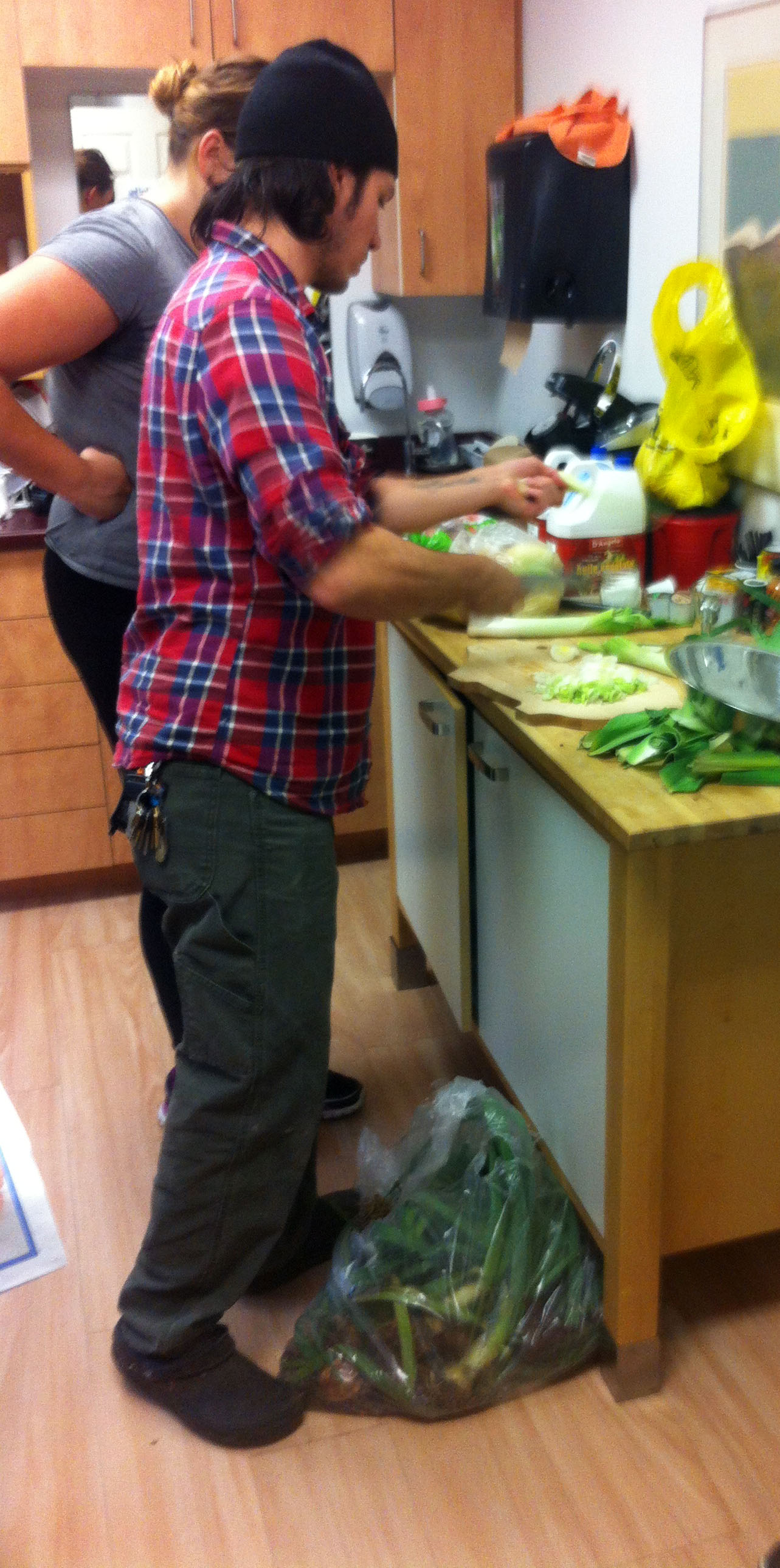 The Frugal foodie event at Laurier Brantford is one that teaches students and local residents how to prepare high quality meals. The magic takes place inside of a small kitchen at the Aboriginal Student house. Joe Farrell, a volunteer chef, was able to dedicate some of his free time to give cooking lessons. Farrell has a lot of cooking experience from working in a restaurant near the Distillery district in Toronto. Farrell was kind enough to bring some ingredients of his own and discuss his thoughts concerning healthy food. “Eating good food is good for your mind. It’s also about understanding basic cooking techniques and natural things you can do to enhance the flavors that are already there. That’s overall my cooking philosophy. Respecting the ingredients and understanding where they came from.”