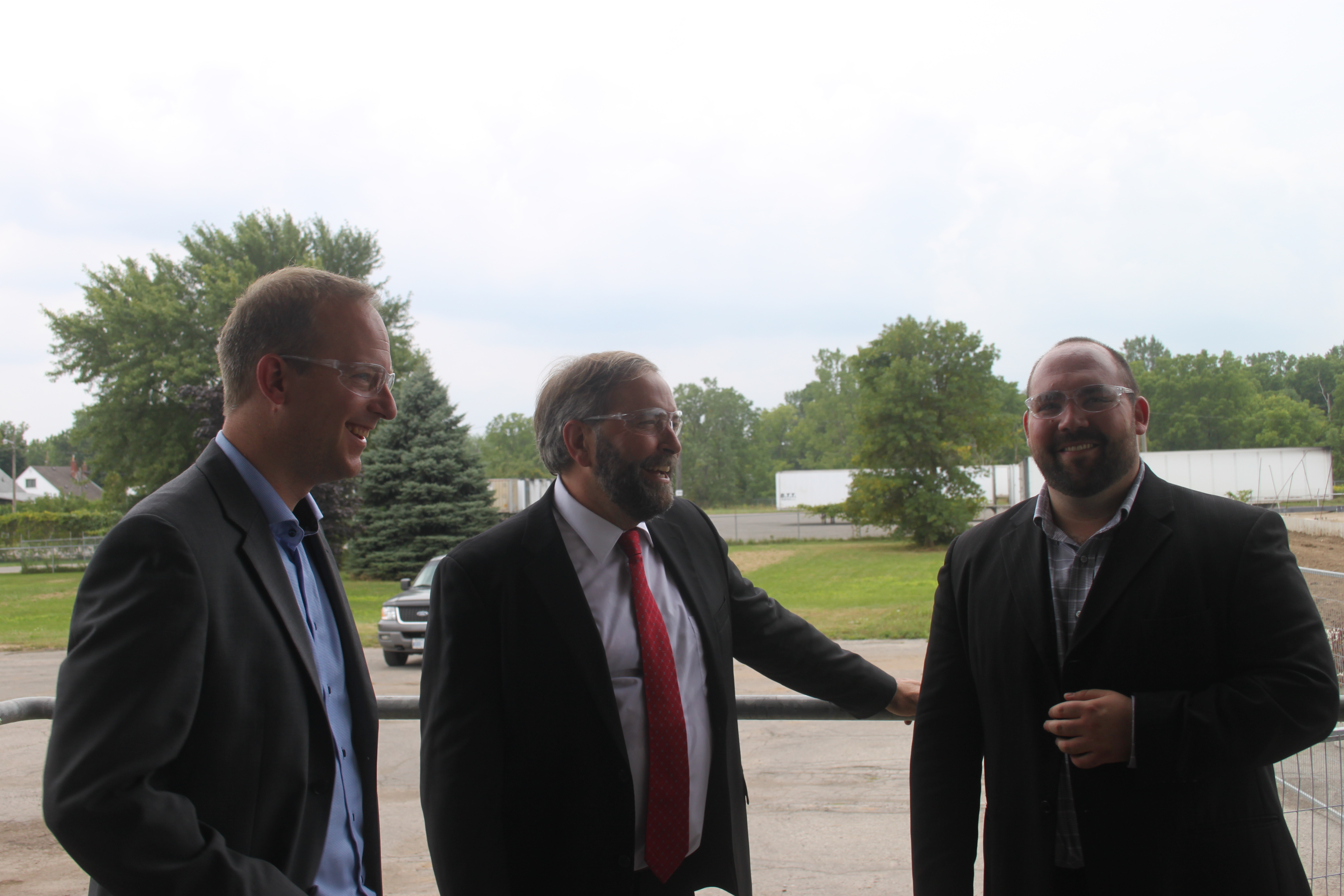 Federal New Democratic Party leader Thomas Mulcair visited Brantford Tuesday, August 27, 2013 to tour the innovate Hartmann North America egg carton factory, along with Federal NDP candidate of record for Brant County Marc Laferriere, and local United Steelworkers director Marty Warren.