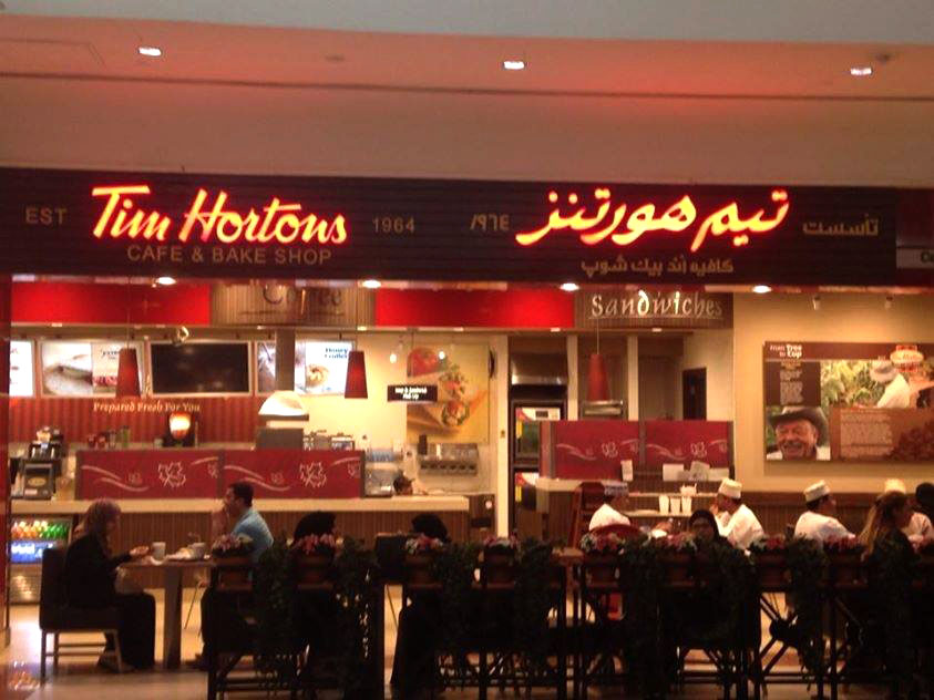 We have many of the same stores you can find in a Canadian mall. Some countries in the Middle East even have a Tim Hortons! The inherently Canadian restaurant opened a couple of years ago, and now rivals Second Cup and Starbucks which have been here for years.