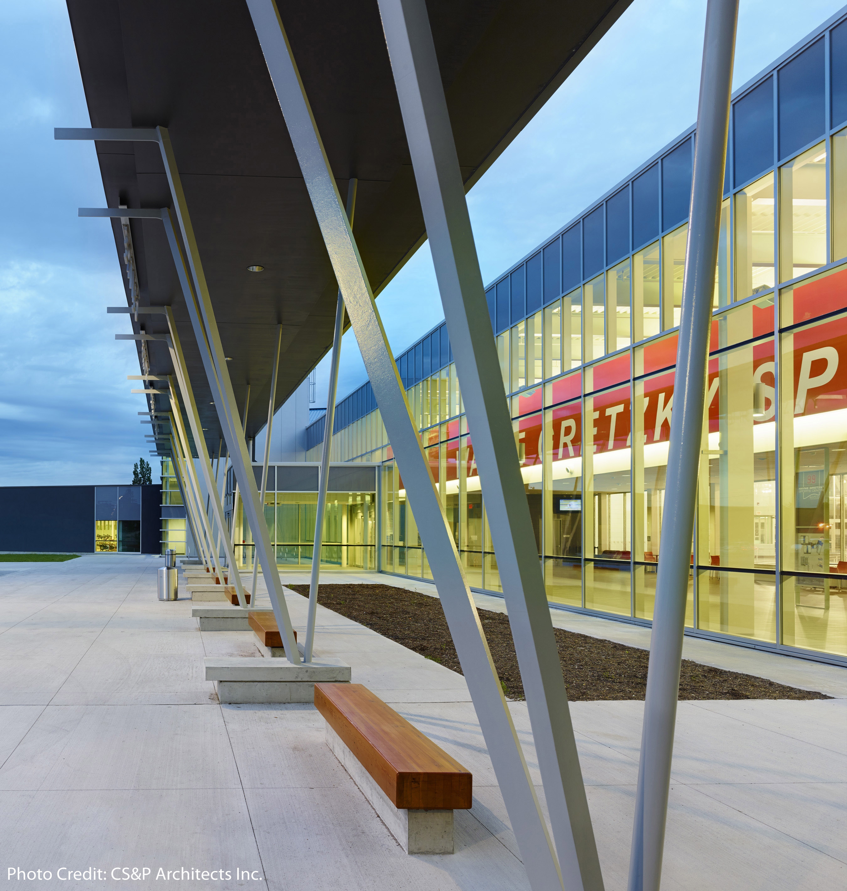 “A $64-million renovation of the facility is expected to be completed this year which includes a new 4-pad arena with seating for over 1,000 spectators in the main rink, and a 25-metre pool and hydro-therapy pool to complement the 65-metre pool. The centre also houses a fitness studio, fully-equipped weight room, dry land training room, indoor track, gymnasium, football field, waterslide and more.”