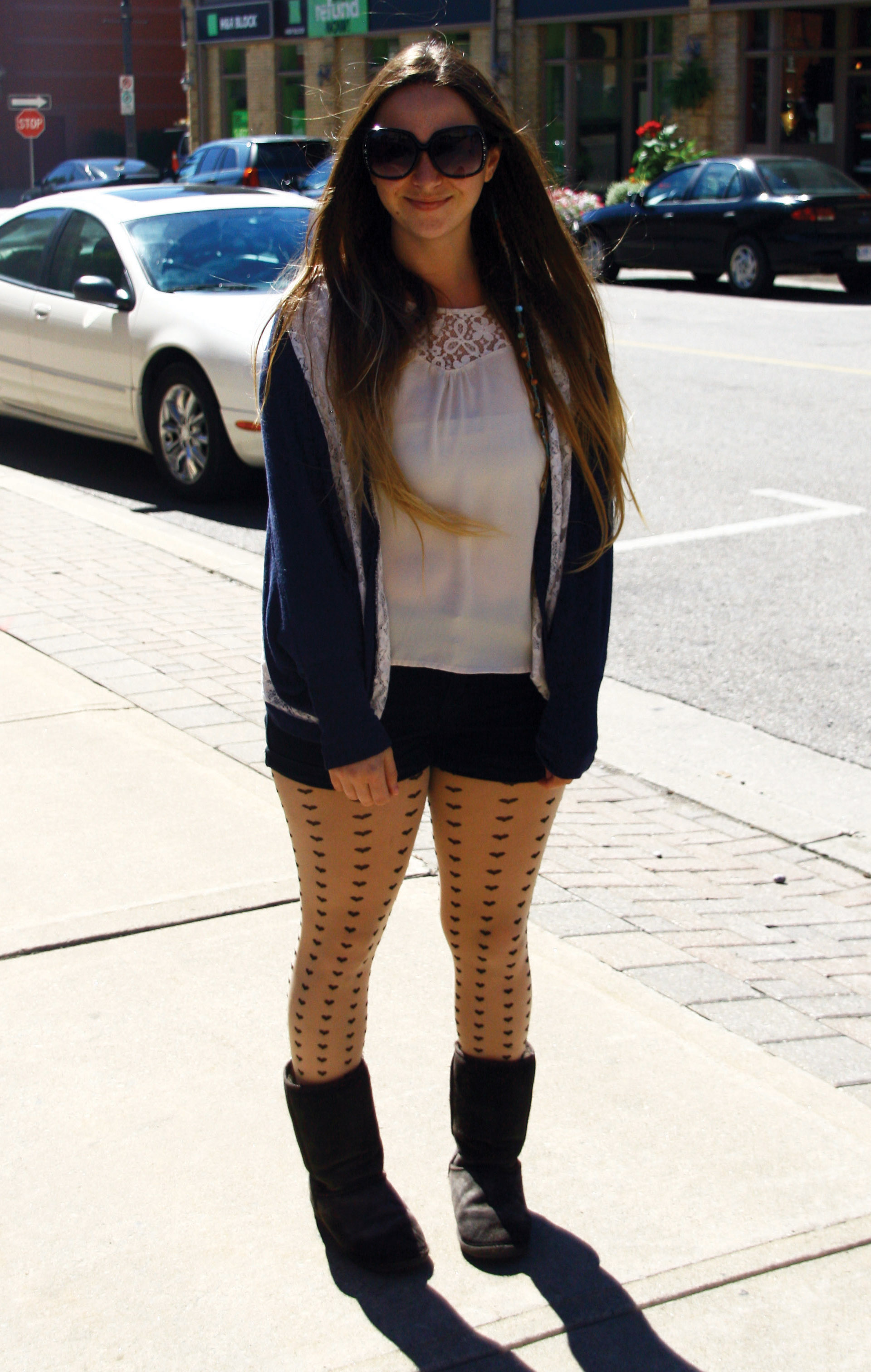 Accessories: Infinity Scarf, Aviators, Cabin Socks, Bib Necklace, Nylon Tights